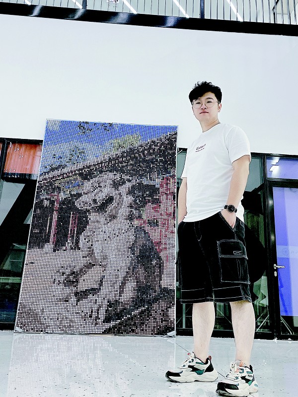 胡凯创作的平面颗粒艺术作品 《数字北大》高三米、宽两米,用20000多个废弃键帽组成,从开始设计到最后形成,700个日日夜夜,十几次调整修改,最终达到满意的艺术效果;《这里有矿》用32种矿石所组成,通过32种矿石里面所形成的80多种颜色最终成画。由于他的创新思路、独特艺术表现力,两幅作品均被北京大学留校收藏,分别入选“北京大学首届数字人文作品展”“北京大学计艺相通展”,并随着国家艺术基金传播交流推广资助项目 “一粒一世界——北京大学颗粒艺术展”进行全国展览。他认为,艺术付诸人类情感,个人情感主观性又贯穿于艺术创作的全过程。生活经历、知识底蕴、审美程度的不同能使观展者产生不同的解读、不同的启示,而这远比艺术创作本身更为重要!