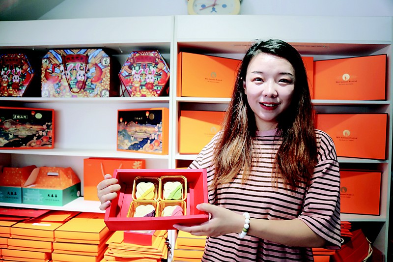 “这两年一直在尝试文创月饼,去年是在‘炉食人人马马’上彩绘古建图案,今年采用套色,而且我自己做了古建模具,效率更高,出来的成品也更精致更美观,很受大家欢迎。”李璐说。