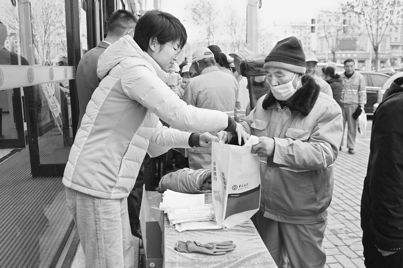 活动中,大家为环卫工人送去了冬帽、手套、口罩等慰问品,并了解了他们的工作情况和日常生活,同时对他们不辞劳苦、不畏严寒坚守在一线工作,默默为城市环境贡献力量表达了敬意和感谢,并叮嘱大家注意防寒保暖。银行工作人员还为他们讲解了银行各类自助设备的用途和使用方法,让大家能更好地共享信息化发展成果,努力消除“数字鸿沟”。