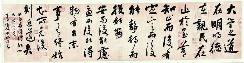 中国书法的第一感觉是汉字。深藏在汉字中的中国书法的基因是线条,书法中的线条具有纯粹抽象、独立的性质,由一画、二画、三画以至数画。我们会惊奇地发现线条的多样丰富性不是在“数画”,恰好就在“一画”之内。中国书法的线,是无数“点”的集合体。单独的“点”是线的浓缩,我们在书写时要把它当作“线”,当作一个生命体,有凝聚力、张力。