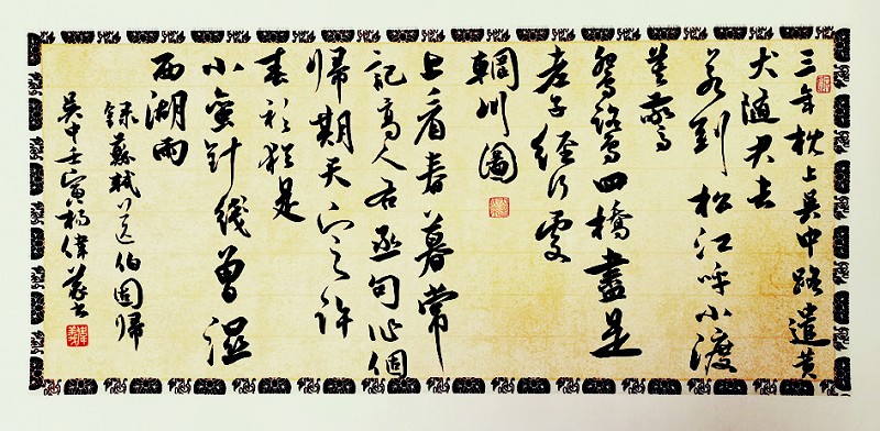 “书画同源”使中国画具有了一个突出的特点:画上题诗或题字,使诗、书、画汇合成一个艺术整体,给人以更加丰富的美的享受。