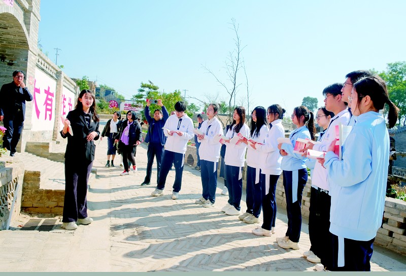 在思政课老师杨丽娟的带领下,同学们来到吕梁市兴县蔡家崖村,围绕“弘扬红色精神”开展实践教学。
