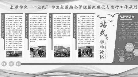 宏观有思路,微观有举措。太原学院“一站式”学生社区综合管理模式建设与运行工作立足思想政治教育 “管理重构、理念重塑”原则,“办离学生最近的教育”理念与学生管理服务高度融合。