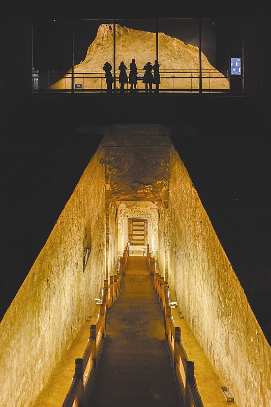 太原北齐壁画博物馆位于太原市迎泽区王家峰村,其土黄色的建筑外墙犹如墓葬厚实的“封土”。当记者步入博物馆“一眼千年”遗址厅,便一脚踏入了北齐徐显秀墓遗址中,透过玻璃墙,墓道、过洞、甬道清晰可见,真真儿体验了一回“一眼千年”。