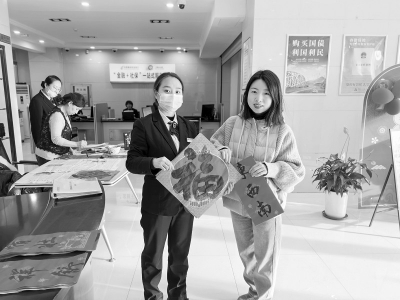 活动现场,阳泉市邮储银行桃北东街支行邀请书法志愿者为辖区居民群众书写下 “事业有成步步高 家庭幸福年年好”等一副副充满祝福的对联,室内气氛热烈、墨香四溢。一张张饱含祝福的“福”实实在在地送到居民手中,写到居民心坎里……整个现场浓浓的年味“扑面而来”,散发着清新墨香的春联寄予群众新年的美好愿景,传递着新时代文明和谐的新风尚。