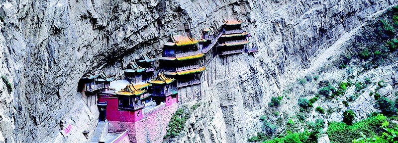 始建于北魏后期的悬空寺,坐落在翠屏峰的半崖峭壁之间,其凌空构建,半插飞梁为基,巧借岩石暗托,上载危岩,下临深谷,素有“人间仙境”之称。远望若海市幻景,若隐若现云中;近观又像是精细入微的剪纸画屏,高悬在恒山的北大门。唐代诗仙李白观后醉书“壮观”盛赞其险绝,明代大旅行家徐霞客叹其为 “天下巨观”,2010年6月,美国《时代》周刊将其列为“世界十大最奇险建筑”之一,2011年被评为 “山西十大景美文物景观”,2013年荣登“山西文化记忆”榜。