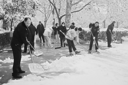 为积极应对雨雪冰冻天气造成的交通不便,永济董村强制隔离戒毒所组织机关民警职工开展清除积雪义务劳动。所领导以身作则,率先示范,机关民警职工积极响应,纷纷拿起铁锹、铁耙、扫帚等工具投入到清雪劳动中。经过两个小时的奋战,该所办公区、警戒楼前及场区主干道的积雪全部清除完毕,最大限度保障了民警职工及附近居民的出行安全。