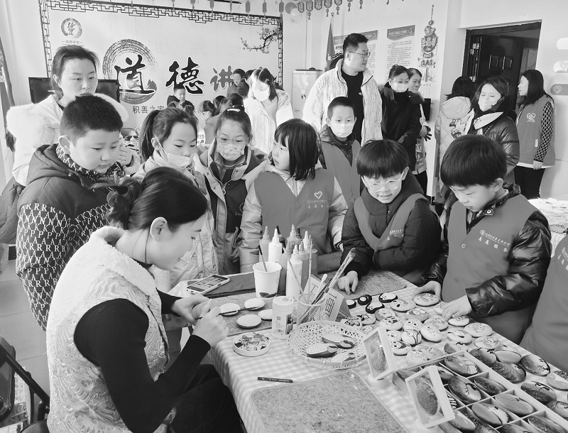 组织非遗传承人带来肖像剪纸、捏面人、葫芦刻画、石头画、糖画、绳编等十余项非遗技艺展演,居民们能近距离感受手艺人的精湛技艺,还能将精美非遗“收入囊中”。活动现场还有好运投壶、趣味圈圈圈等游戏。