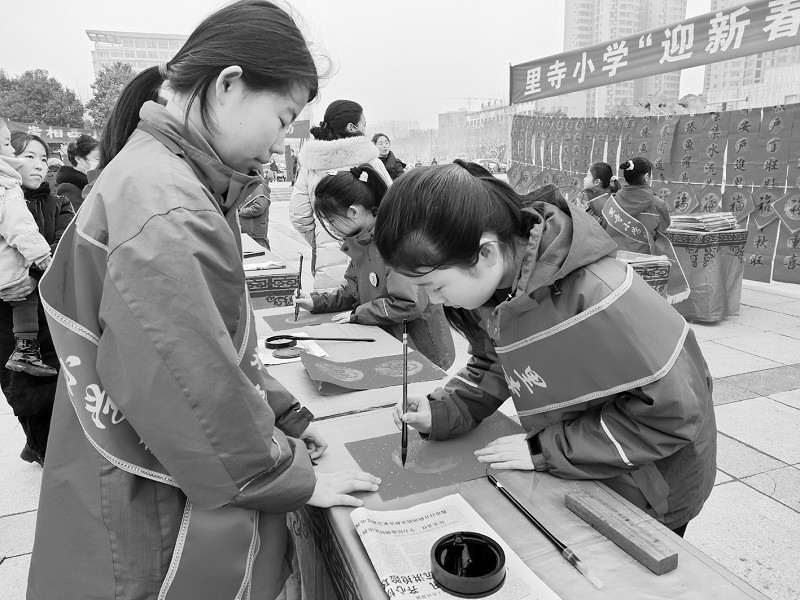 活动现场,翰墨飘香、暖意浓浓。铺纸、蘸墨、起笔……少先队员们神情专注、热情洋溢地在纸上挥毫泼墨。一停顿、一落笔,红纸翻飞间散发着清新墨香的春联为即将到来的春节增添了喜气,少先队员们在一笔一画间书写着文化自信。