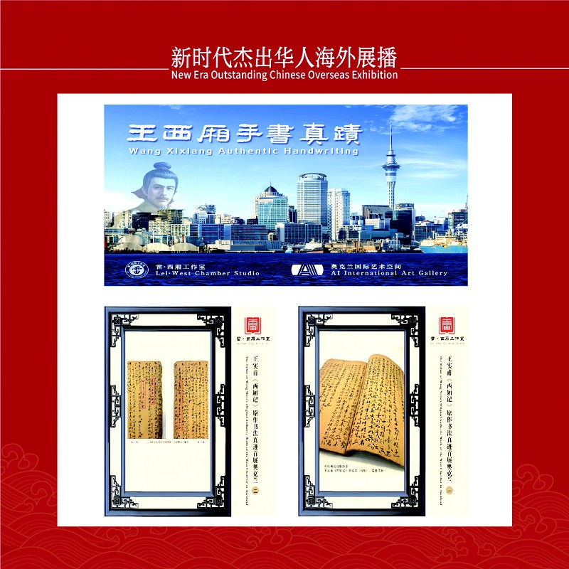 此次展览中,研究中国古典爱情名著《西厢记》50余年的雷-西厢,专门推荐的海外展品包括:既有现藏于德国科隆东亚艺术博物馆的明崇祯彩色套印《西厢记》画册珍品、英国巴特勒家族藏清康熙青花釉里红《西厢记》瓷盘、奥克兰首展王实甫 《西厢记》创作书法真迹(董联桥题词),还有雷建德向新中友协奥克兰分会主席迈克·道森赠送的新西兰 《先驱报-西厢记珍品亮相风帆之都》。据了解,接下来还将展览法国国家图书馆馆藏的清道光系列画选 《风月秋声西厢记》、中国古代展品元代 《西厢记》书法残片彩图、明刊本《西厢记》插图及当代黄河流域西厢轶事剪纸、西厢记与罗密欧与朱丽叶》(李兴骏画作)等。