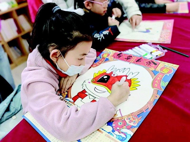 太原市青少年宫(太原市青少年活动中心)聘请省城名师开办了非遗冬季训练营,少先队员们在名师的带领下,扎风筝、制传拓、雕篆刻、写春联……在传承中华优秀传统文化的过程中,触摸中华民族五千年的历史文脉;吕梁市孝义市崇文街小学的少先队员在观赏花馍作品、了解花馍历史、亲手制作花馍的体验中,感受非遗的独特魅力;太原市娄烦县尖山小学的少先队员用非遗线编技艺编织出一条条充满灵气、形象逼真的“金龙”;太原市迎泽区建设路小学的少先队员将书写的春联和“福”字送给派出所民警、社区干部、环卫工人、学校保安和保洁人员,感谢他们为自己提供平安、和谐、舒适的学习环境;阳泉市矿区蔡洼街道菜市社区少工委带领队员们将一张张废弃的水果网变为栩栩如生、活灵活现的“中国舞龙”;在太原市尖草坪区南寨街道朝阳社区少工委的组织下,队员们化身“神笔马良”,勾勒出独属于自己的龙年挂历;太原市小店区光明小学校的少先队员用亲手制作的花灯点亮整个校园,并通过学校视频号进行了直播,收获了网友的赞叹。