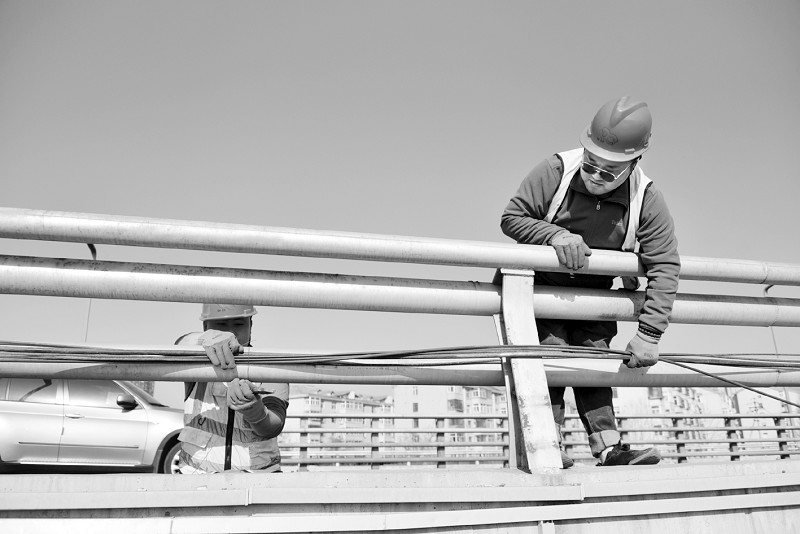 近日,太原市政建管中心桥梁养护管理所工作人员在对太原南站附近东中环快速路上的线缆进行整顿。根据太原市城乡管理局安排部署,推动桥梁设施管养工作全面提升,该中心首先联合太原市城市管理综合行政执法局,对移动、联通两家公司进行桥梁线缆整治约谈,对四大运营商未按照前期规定时间进行线缆规范穿设的行为进行了立案,上报切实可行的整改方案。随后,将悬挂线缆最密集、最杂乱的地段分为南中环片区、南站片区、东中环片区、许东片区、南沙河片区5个片区分区整治。