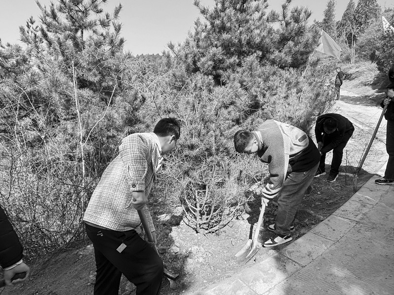 在长江支队纪念林英名碑前,大家认真聆听革命先辈的英雄事迹,深刻感悟长江支队舍家报国、无私无畏的精神,在回顾历史中缅怀革命先烈,在重温入团誓词中坚定理想信念。漫步纪念林间,大家一边聆听感人故事,一边深切感悟晋城儿女筚路蓝缕、披荆斩棘的拼搏精神,感悟革命先烈英勇抗敌、不畏生死的英勇气概。在纪念林基地,又是一派热火朝天的繁忙景象。大家积极投入到植树活动中,种下一颗颗白皮松树苗,并为树苗筑堤浇水。新栽下的树苗挺立在道路两旁,焕发出勃勃生机。
