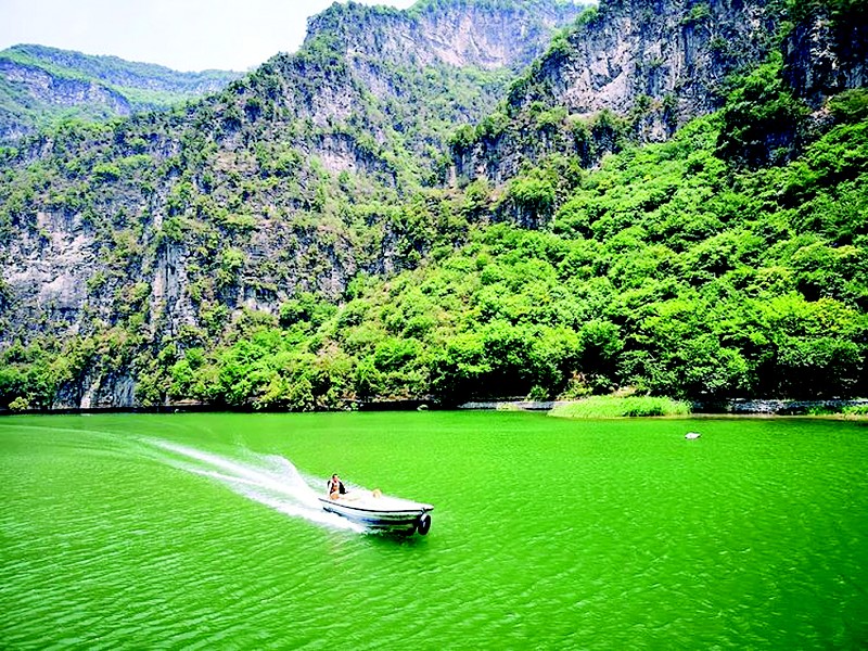 乘游艇看两岸风光如画,山崖高耸、山峰紧依,仿佛置身于“两岸猿声啼不住,轻舟已过万重山”的诗情画意中。这便是泽州山里泉自然风光旅游区。大自然的鬼斧神工在这里造就了举世罕见的地质奇观,滔滔沁河水九曲十八湾犹如一条蛟龙雄踞在大山深处。这里四季皆美,尤以秋季为最。每逢金秋时节,景区内群峰秋色盈金、树叶流丹、娇艳似火,瑰丽似霞的几十种红叶竞相斗艳,耀眼夺目。