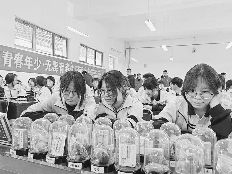宣讲中,张俊和向学生们讲解了毒品类型、危害和如何防范等内容。现场还进行了有奖问答,学生们近距离观看了各类毒品模型,进一步了解毒品的种类和吸毒的危害。