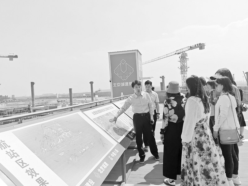 由三期改扩建工程现场指挥部乘车,采访团到达一处观景平台。站在这里,放眼望去,塔吊林立,吊臂挥舞,施工车辆往来穿梭。目前,该项目处在建设高峰期,截至今年4月底,航站区工程的T3航站楼混凝土主体结构完成约65%;综合交通中心工程主体结构完成约65%,P4停车楼主体结构完成约73%;高架桥工程、飞行区工程和市政工程也在同步稳步推进中。