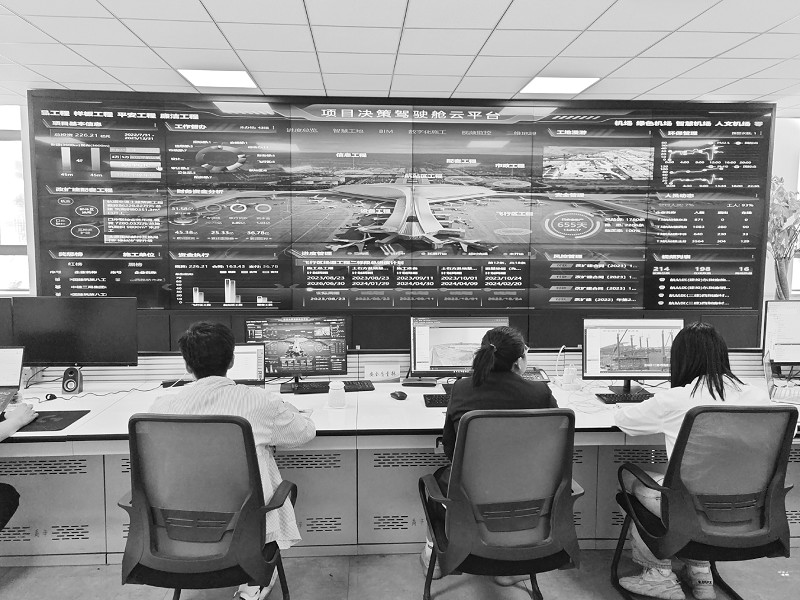 16日下午,采访团一行来到三期改扩建工程现场指挥部,“平安机场”“绿色机场”“智慧机场”“人文机场”“零碳机场”“数字机场”6个宣传板块映入眼帘,以“4+2机场”为方向,该工程正在全力推进中。而指挥部大厅摆放的沙盘模型,更加直观地展示了该工程的项目体量,航站楼建筑呈现“山”字型,现有跑道南侧将新建一条长3600米、宽45米的第二跑道及相应滑行道系统,新建40万平方米的T3航站楼和122个机位的站坪,新建5万平方米的综合交通中心,新建13万平方米的停车楼……三期改扩建工程按照满足年旅客吞吐量4000万人次、货邮吞吐量30万吨的终端目标设计,计划2025年年底竣工,2026年投入运营。