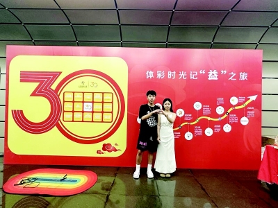 在人气担当的 “体彩30周年我与公益同行”打卡拍照区,精美的布置吸引了不少情侣拍照打卡,把爱“秀”出来,与体彩共同见证幸运与美好。
