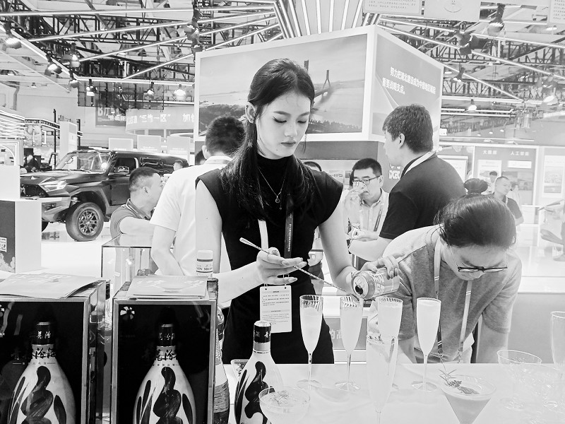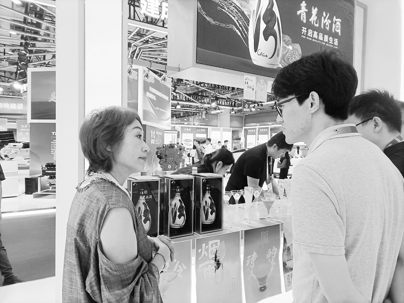 “白酒调制的鸡尾酒吗?这我得好好尝尝!”“这款酒的名字让我想到了南朝四百八十寺,多少楼台烟雨中。”山西汾酒将调酒吧台设在了山西展厅的中部醒目位置,吸引了大量游客前来品尝。为了迎合年轻市场,山西汾酒开拓创新,设计了“烟雨”“诗人的梦”“如梦令”三款以青花汾酒30为基酒的特调鸡尾酒。