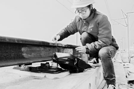 关改玉的奋斗足迹遍布祖国的大江南北。在京沪高铁河北段施工期间,为精准感知探头的灵敏度,她毅然脱掉棉手套徒手操作设备,双手被冻得通红僵硬,只能哈气取暖后继续作业。最令她苦恼的是攀爬20米高的高架桥,桥墩旁搭建的简易扶梯摇摇晃晃,为了工作,她只能硬着头皮一步一步往上挪。至于扶梯顶部与高架桥之间临时搭的隔板,是男同事扛着她走过去的。“再苦的条件都得克服,既然选择了这个行业,就得咬牙坚持。”关改玉说。