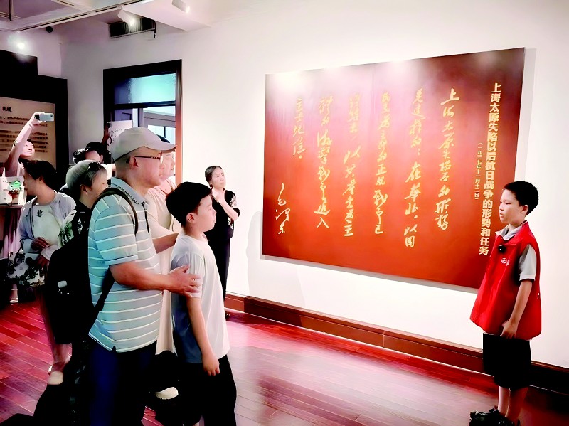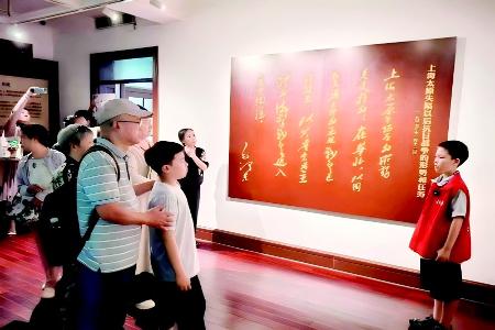 参与实践的“红领巾讲解员”佩戴红领巾、手持讲解词,在大学生志愿者的协助下,向参观者生动讲述了抗战时期的英雄事迹、抗战历程及文物背后的故事。从初期的紧张生疏到后期的流畅表达,少先队员真正在实践中实现了“学历史、讲历史、传历史”。
