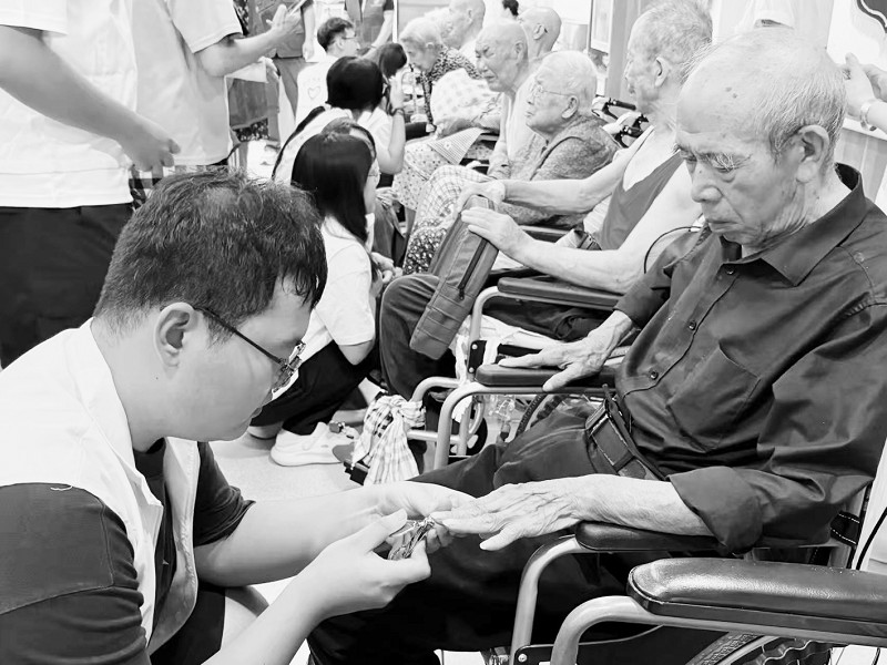 活动中,大学生们精心准备了文艺节目。当《歌唱祖国》的熟悉旋律响起,不少老人情不自禁地跟着哼唱;《奇妙能力歌》的清新旋律和《小美满》的温馨曲调,则带来了青春的气息与美好的祝福。随后,大家耐心聆听老人讲述过往故事和生活点滴,有的大学生还细心地为老人修剪指甲,满是贴心与敬意。参与活动的大学生纷纷表示,将用实际行动传承敬老、爱老、助老的中华传统美德,展现青年担当。