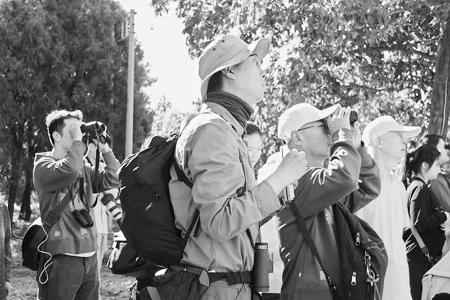 头戴遮阳帽,脖子上挂着望远镜,这是“鸟人”的经典装扮,观鸟者们借此互认,友善地点点头,有时会问上一句“今天看到什么鸟了”,有时则结伴去找鸟。