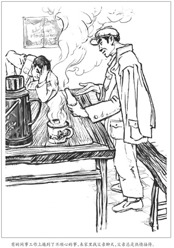 父亲是一位仁慈善良的长者,一辈子善解人意、严于律己、宽以待人。身为领导干部,他总是把单位的年轻人和部下当自家人一样对待。听母亲说,有一年父亲单位分配来一位年轻人,在单位集体宿舍住。年轻人家庭条件较差,生活上遇到了不少困难,父亲就让我们的母亲对这个年轻人多照顾些。单位集体宿舍冬天冷,父亲就把家里正用的煤油炉子送给年轻人以解燃眉之急。那个年轻小伙子结婚后,有了孩子,但小两口平时工作忙,中午回不了家,父亲和母亲就谁有空儿谁去替人家接送孩子,有时候还把人家的孩子接到我们家里来吃饭。遇到单位年轻职工的孩子生病了,父亲也会记在心上,帮忙寻医问药。有的同事工作上遇到了不顺心的事,来家里找父亲聊天,父亲总是热情接待,耐心给他们解答疑问,劝慰疏导,以解开其心结。所以,父亲单位的许多年轻人都把我们家当成了他们自己的家。父亲单位的年轻人都说,父亲慈眉善目,和声细语,看到他,他们的烦恼和忧愁就没有了。我们的父亲真正做到了“对同志如春天般的温暖”。