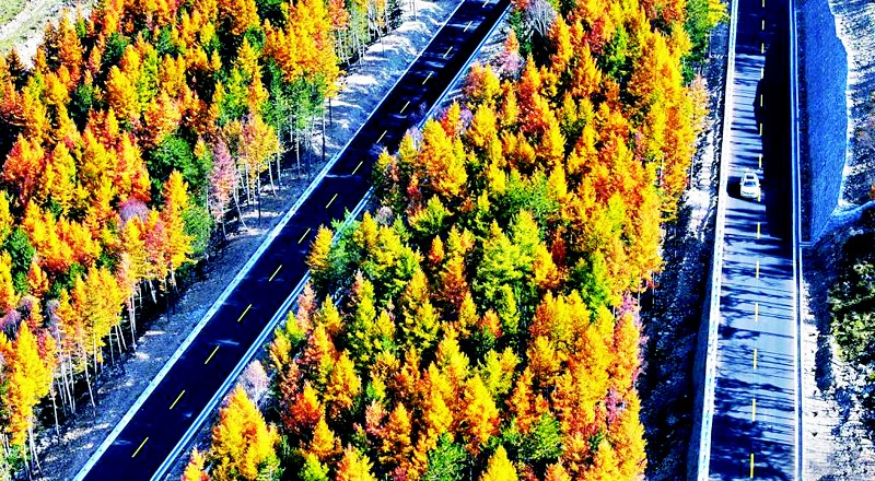 大山巍峨,连绵起伏,成片山花点缀其间,传递着美好的气息。驾车畅行在太行一号旅游公路忻州段上,美景如画卷般徐徐展开,幽深峻峭的峡谷直跃入眼,苍翠秀美的林木接连闪过,灰墙黛瓦的古朴村落时隐时现。该路段以红、黄、蓝三色喷涂标线,宛如一条灵动的丝带,盘桓在太行山深处,串起沿途无数景致。