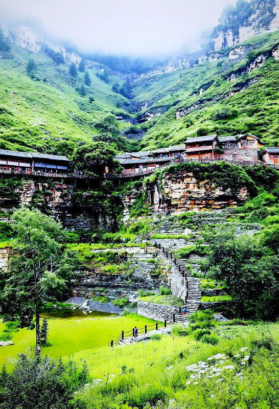 芦芽山中的悬空村也是一奇,被称为绝壁之上的 “天上人家”。悬空村建于明清时期,在海拔2300米的悬崖绝壁间,依山而建,木柱撑屋、栈道为街,是第一批入选中国历史文化名村的村落,目前还有10余户人家栖居于此。