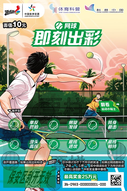 运动健身有助于提升人体新陈代谢的速度,科学且适度的运动有助于高效实现减肥塑形目标。体彩顶呱刮推出“体育科普 即刻出彩Ⅱ”即开票,科普运动小知识,为科学运动助力,为减肥塑形加油。这款票共有6个票面场景,分别聚焦攀岩、桨板、滑板三项新兴运动和网球、羽毛球、乒乓球三项球类运动,通过图文结合的方式直观呈现各项运动的动作要点,票背面更附有基础的运动科普知识,便于购彩者了解六项运动,带动运动热潮。