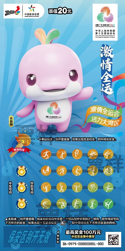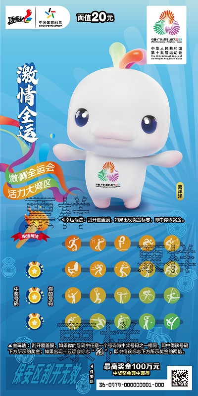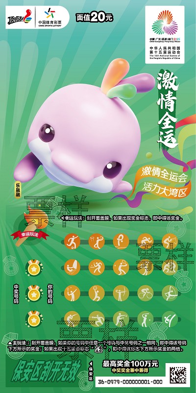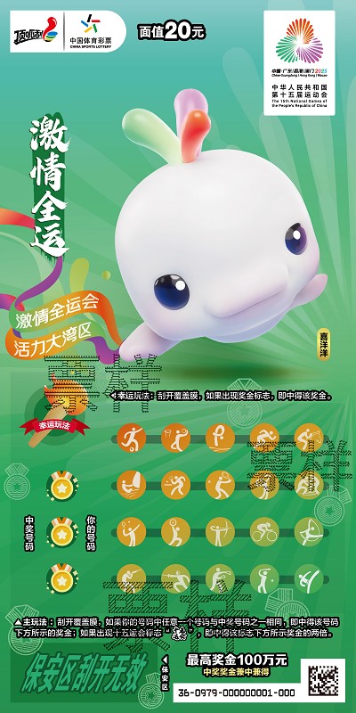 在全民健身热情高涨的背景下,体育赛事的社会关注度持续攀升,很多青少年因关注赛事而萌生运动兴趣,进而走上专业竞技道路,为我国竞技体育的发展注入了新力量。第十五届全国运动会将于今年11月9日至21日举行,由粤港澳三地联合承办,体彩顶呱刮特别推出“激情全运”即开票,包含6个票面场景,票面上巧妙融入十五运会吉祥物“喜洋洋”“乐融融”、十五运会主题口号、十五运会会徽等元素,喜迎全运,为赛事助力添彩。