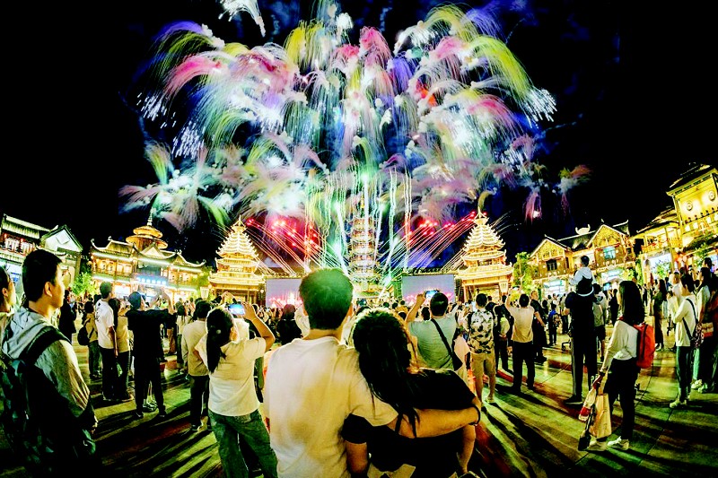 太原方特三重梦幻焰火秀七夕浪漫上演