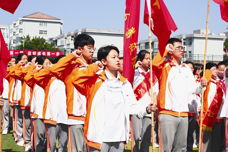 在“师生同台,展望未来”环节,各年级学子代表相继发声,传递青春志向。最后,全体同学齐声诵读社会主义核心价值观,并举起右拳庄严宣誓,用铿锵有力的誓言立下新学期的奋斗承诺。