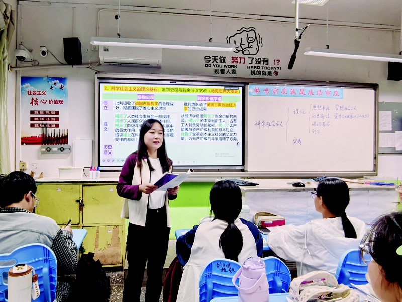 今年29岁的牛露燕圆满结束了第一届高三教学,不仅带领班级实现政治成绩逆袭,更用生动的课堂、真诚的陪伴,在学生心田播撒下真理与信仰的种子。从教以来,她始终以“立德树人”为初心,在思政教学的道路上不断探索,用实干与热忱诠释着新时代思政教师的责任与担当,也因此荣获学校“金牌教师”称号。