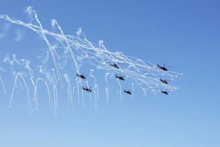 18日,第七届中国天津国际直升机博览会举办公众开放日,陆军“风雷”飞行表演队进行特技飞行表演,为现场观众献上一场视觉盛宴。