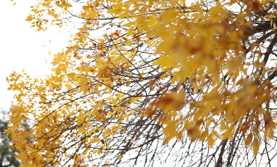 10月20日,两名青年在太原文庙百年古树下与秋色合影。 云天收夏色,木叶动秋声。近日,气温逐渐转凉,各大公园景区内绿植悄然变换了颜色,吸引众多游人前往打卡拍照,驻足欣赏这迷人的秋色。 本报记者 胡远嘉 摄影报道