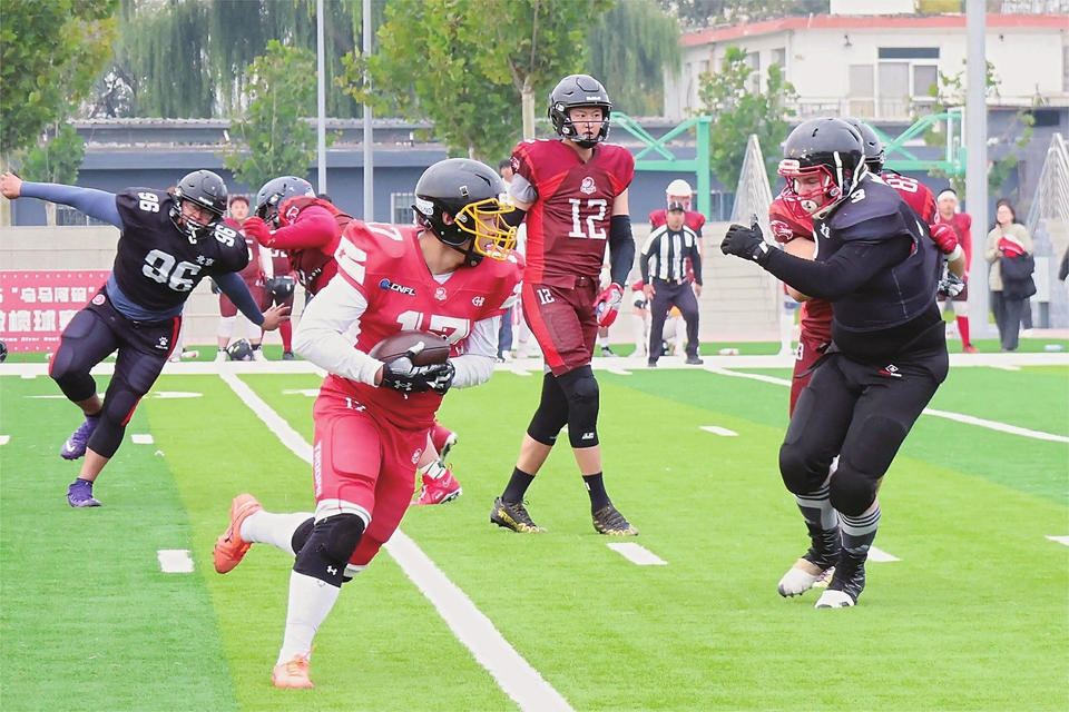 本报记者 赵云云 “达阵了!达阵了!”10月26日,山西晋中太谷乌马河畔,2025“乌马河碗”橄榄球赛在晋中信息学院橄榄球场落下帷幕。 此次比赛历时3天,汇聚了沈阳猎人队、北京大学生联队、呼和浩特蒙戈球队、太原晋卫军队、石家庄解放者队及晋中信息学院龙队六路精英,来自中国、塞尔维亚、德国、瑞典4个国家10余个城市的200余名球员,以极致热血让校园里的荷尔蒙飙升。经过巅峰对决,太原晋卫军队捧起冠军奖杯。