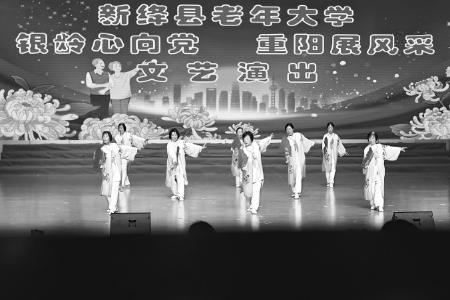 10月27日,运城市新绛县老年大学举办了以“银龄心向党 重阳展风采”为主题的文艺展演,城乡众多“夕阳红”学员欢聚一堂,载歌载舞颂党恩、赞美祖国。 活动现场,老人们精神饱满、神采奕奕,用嘹亮的歌声、优美的舞姿和娴熟的技艺,展现老年人的活力与风采。台下观众掌声不断、笑语连连,现场洋溢着喜庆祥和的节日氛围。活动不仅丰富了老年朋友的精神文化生活,也传递了爱党爱国、积极向上的正能量,让大家在欢声笑语中度过一个意义非凡的重阳节。 本报记者 李云霞 通讯员 高新生 摄影报道