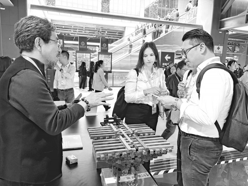 除了展示模型,赵小芳带来的还有企业在古建保护与创新上的探索,榫卯积木、装配式木构建筑等新产品备受关注。“榫卯积木可以启发孩子的空间思维,健康环保的装配式木构建筑则让古建美学走进现代生活。我们希望借助进博会平台,与国内外同行广泛交流,打开更广阔的合作空间。”赵小芳说。