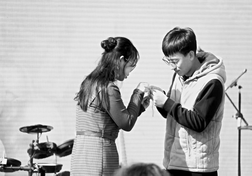 活动精心设计了“桃花朵朵开”“投壶寄情”“套圈寻缘”“穿针引线”“你是我的眼”“女王保卫战”等互动环节,让大家在欢笑与协作中快速拉近距离。每个环节都伴随着乐队的精彩演唱,一首首经典歌曲让现场爱意升温。