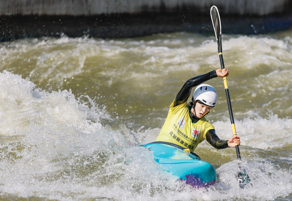 本报记者 李睿 在第十五届全运会赛场上,山西代表团多点开花,用一枚枚奖牌展现出勇于进取、顽强拼搏的精神。截至记者发稿时,我省健儿共取得5金5银8铜,铸就了属于山西体育的高光时刻。 11月15日,第十五届全运会皮划艇激流回旋女子极限皮艇决赛收桨,山西选手黄婕妤获得第8名。据了解,这是我省皮划艇激流回旋项目女子极限皮艇在历届全运会中取得的最好成绩。接下来,我省水上运动选手将继续在皮划艇静水项目中争夺佳绩。图为山西选手黄婕妤在比赛中。