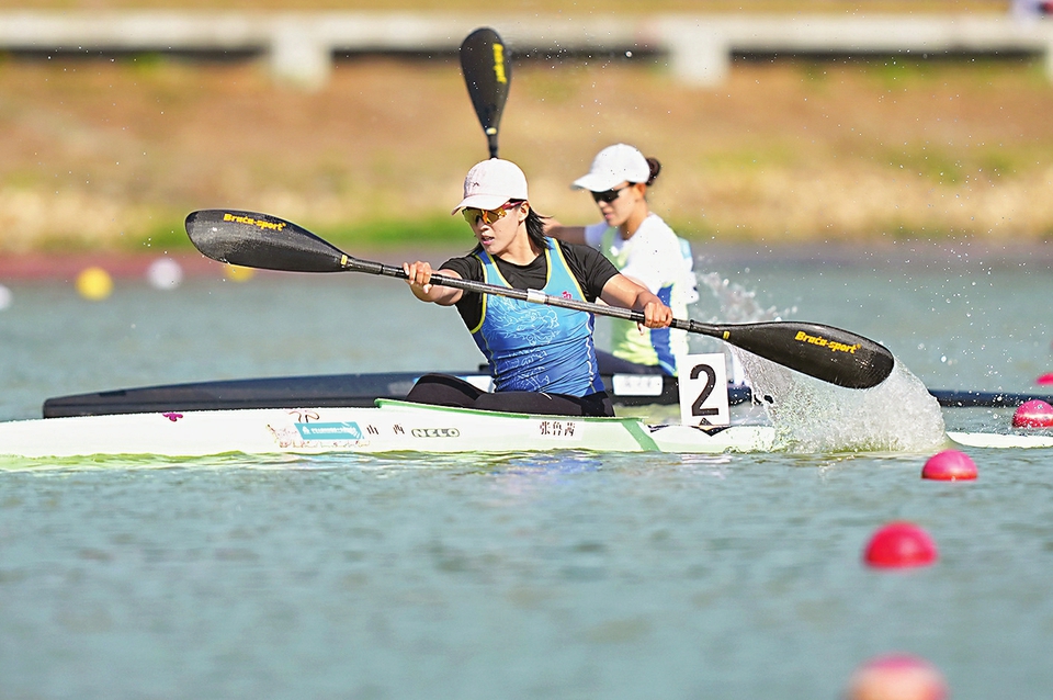 11月17日,第十五届全国运动会皮划艇静水项目迎来焦点战。在女子500米单人皮艇决赛中,山西选手张鲁茜以1分49秒943的成绩摘得银牌。