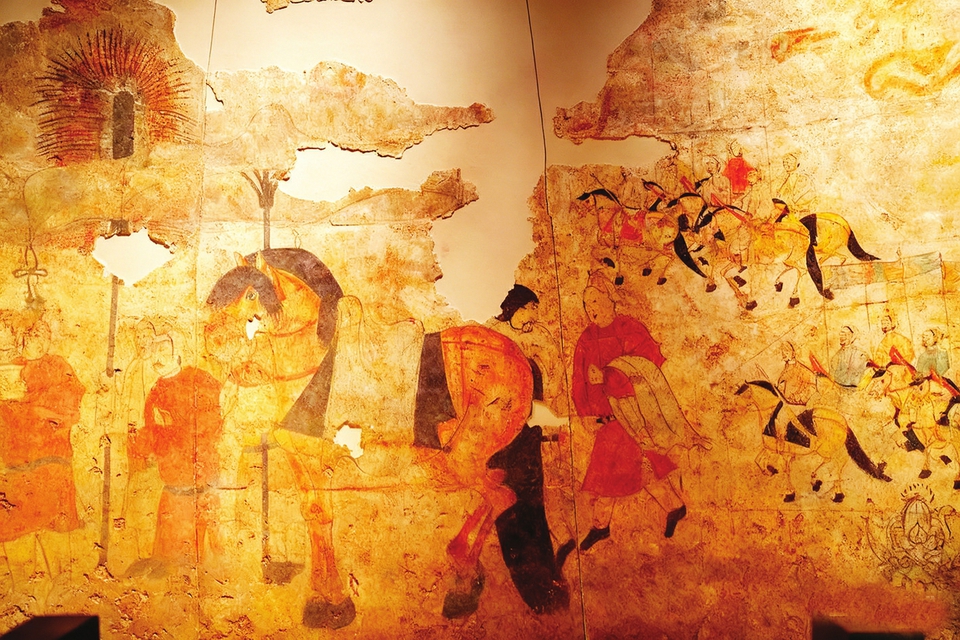 太原北齐壁画博物馆的北齐娄叡墓壁画,于2002年列入首批禁止出国(境)展览文物,是中国古代绘画的巅峰之作,被誉为“改写中国美术史”的杰作。墓中壁画绘有200余匹马,无一重复、动态多样。该墓壁画代表作《鞍马游骑图》,鲜活勾勒出墓主人鲜衣怒马的出行仪仗盛景,让人们直观了解了1400多年前的“骑行装备”。