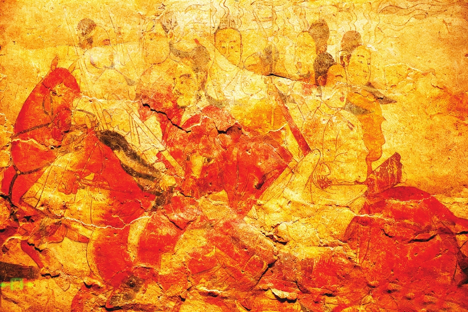 壁画中,有一匹梳着“中分”发型的枣红色马,一双炯炯有神的大眼睛,无论从哪个角度看过去,它都像是在看你。画中还有一匹“无人驾驶”的马,这是空鞍马,暗合壁画中生死轮回的叙事逻辑,也彰显了墓主人的气派和权势。从艺术层面看,空鞍马以虚实对比增强构图节奏,使整幅作品更具艺术张力。