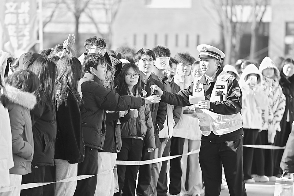 随后,由高校学生们自编自导的小品《路口安全课》生动再现了路口通行中的常见风险场景,以幽默诙谐的表演传递“红灯停、绿灯行”的基本准则,赢得现场本报记者 路诗洁 摄的阵阵掌声。在警务装备及防身技能演示环节,民警现场展示了各类警务装备的功能用途,并传授实用防身技巧,提升师生的自我防护能力,活动全程通过“晋中交警”抖音官方账号网络直播实现线上线下同步覆盖。