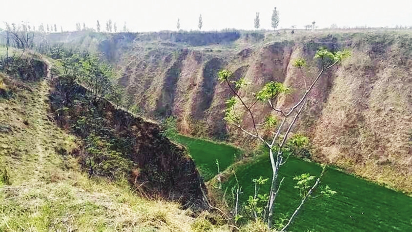 在临猗古十八景中,峨嵋岭就占3个。“峨嵋春雨”指的是旧时每当春雨降临,初润青苗,遥望峨嵋岭上的梯田披绿,绿色成环,层级入画。“峨嵋晓耕”泛指岭前沿层叠的梯田,同时反映了唐时农夫黎明即起的农耕景象。“星台朗月”说的是古时在岭顶建有高台,每当明月当空,登台瞻望无边的原野,好似万顷琉璃,夜景深远,好像到了蓬莱胜境,令人振奋。