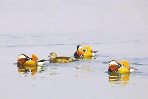 冬日的漳泽湖褪去了春的清新、夏的烂漫、秋的华彩,迎来了冬的静谧。它静静地舒展着挺拔的身姿,蓝天映衬下,灰白色的植被和蓝色的湖水交相辉映,远处层峦叠嶂、近处水天一色,犹如一幅梦幻的水墨画卷。鸳鸯起舞、野鸭嬉戏、鸟儿飞翔……入冬以后,漳泽湖迎来众多候鸟回迁越冬,它们或游弋觅食,或追逐嬉戏,与波光粼粼的湖面相映成趣,绘就成一幅湿地冬韵的生态唯美画卷。