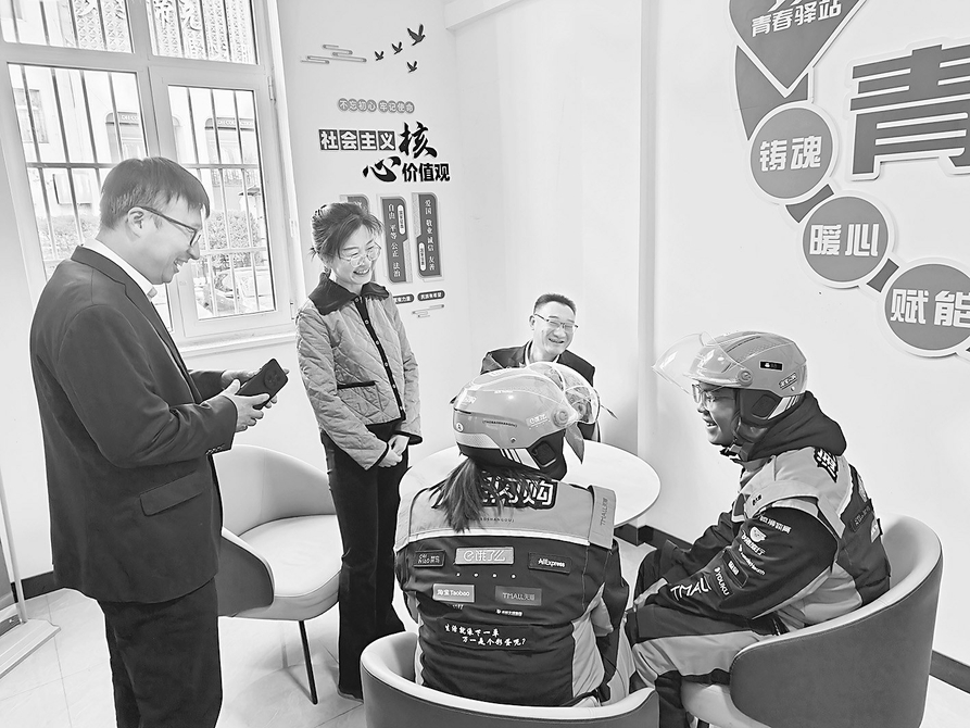 近日,在晋城市黄华街移动大厦里传出阵阵掌声,该市“青春驿站”共建启动仪式暨关爱新兴青年群体慰问活动在此举行。团晋城市委相关负责人与50余名外卖员齐聚一堂,共同见证政企协同服务青年的暖心时刻。