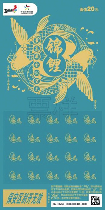 “锦鲤”主题即开票精心设计了三个票面场景,分别以象征喜庆热情的中国红、象征绚丽典雅的松石绿、象征高贵华丽的黑金色为主色调,搭配红白锦鲤、龙凤锦鲤、黄金锦鲤等主形象,寓意前程似锦、龙凤呈祥等美好愿景。